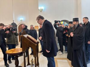 ПРЕДСЕДНИК Србије Александар Вучић истакао је током посете Клокочевцу да је наша српска црква света.