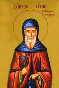 „Преподобни Тит Чудотворац ради Христа остави свет и предаде се подвигу. Због подвига и великог смирења стекао је дар чудотворства од Господа.“
