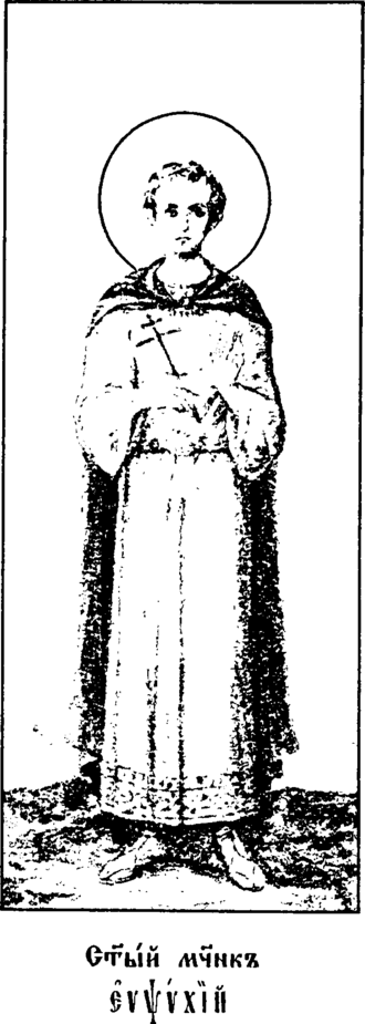 „Утамничи овога мученика Епсихија и нареди да погубе њега и његове другове који су уништили, разорили незнабожачки храм. Сам Епсихије би везан за дрво и мучен и на крају посечен 362. године“.