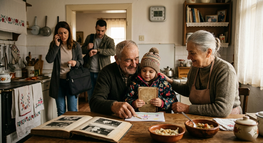 Бака и дека преносе више од рецепата и породичних албума. Они преносе вредности – како се поздравља, како се поштује, како се остаје доследан. Њихове приче о младости, о љубавима које су чекале писмо недељама, о временима без интернета и са више стрпљења, дају деци осећај припадности.