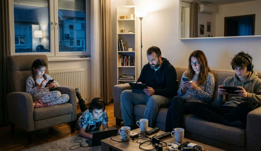 Оно што смо некада називали породичним огњиштем, у 2026. години изгледа више као чекаоница на аеродрому – место где људи бораве заједно само зато што чекају следећи лет ка својим дигиталним световима.