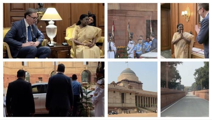 (ФОТО/ВИДЕО) „ПОСЕБНО ЦЕНИМ ИСКРЕНУ ПОДРШКУ И СПРЕМНОСТ ДА УНАПРЕДИМО ПАРТНЕРСТВО“ Вучић у Њу Делхију са председницом Републике Индије